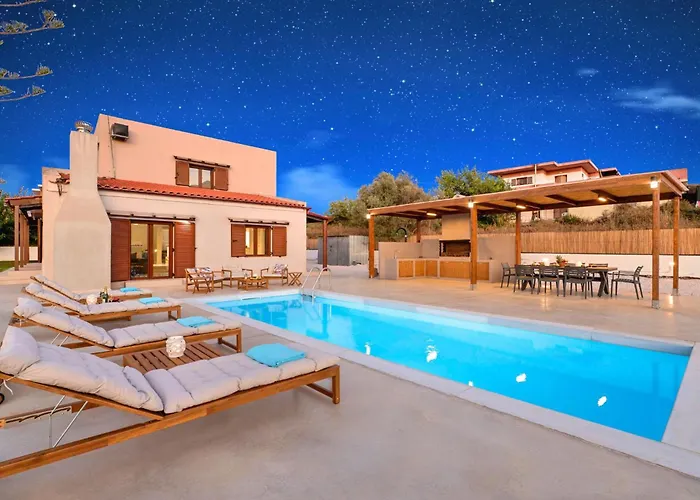 Az Kavrósz körzetben található Holiday Home Vegghera Villa Mit Bergblick By Interhome Paralia Kourna teraszt kínál vendégeinek a pihenéshez.